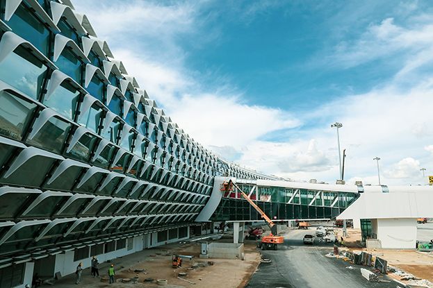 深圳机场卫星厅及其配套工程项目,项目整体采用“X”型蝠鲼构造设计,与在营深圳机场T3航站楼交相呼应,集行李捷运、旅客航运、货物集散等多功能于一体,计划年底交付使用,届时可满足2200万人次使用需求,为打造湾区国际空港,一流航空枢纽,全球货物集散中心奠定坚实基础。深圳机场卫星厅启用后将对提升机场服务保障供给能力,增强机场在“双区”建设和民航高质量发展中的硬实力、竞争力具有重要意义。
