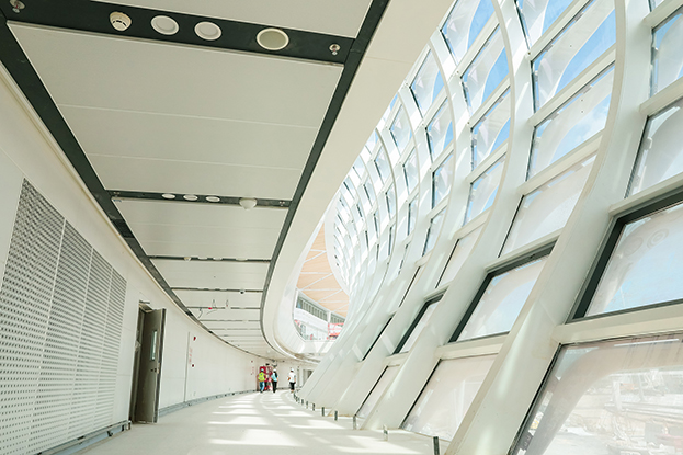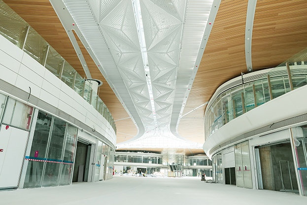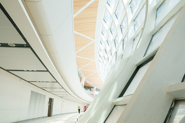 深圳机场卫星厅建筑面积23万多平方米,由中央、东南、东北、西南和西北五个指廊组成,分为地上四层、地下一层。作为唯一参与精装修的民营企业,中装建设主要负责深圳机场卫星厅2-3层西南、西北指廊,西双子星广场的精装修工程。