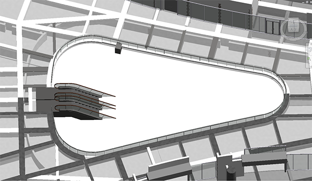 ▲镂空区域,双曲面檐口通过BIM模型演示与现场定位,模型下单